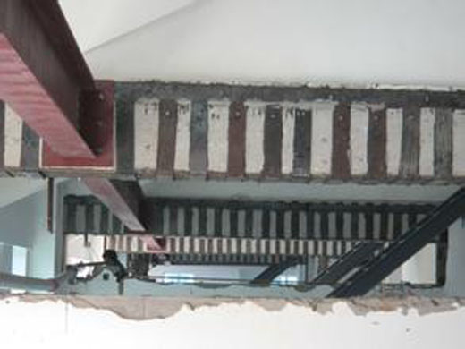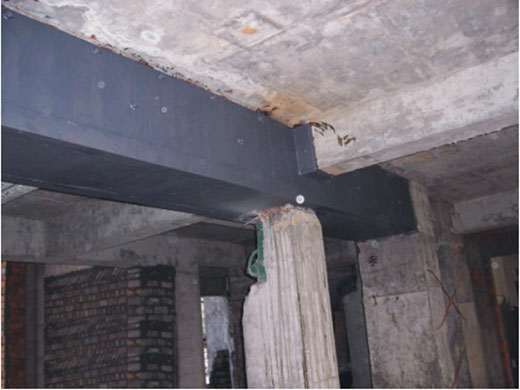 對鋼筋混凝土梁、柱外包型鋼、扁鋼焊成構架并灌注結構膠粘劑,以達到整體受力,共同約束原構件的加固方法。